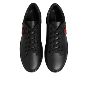 Dolce & Gabbana Black Leather Crystal Heart Sneakers Shoes