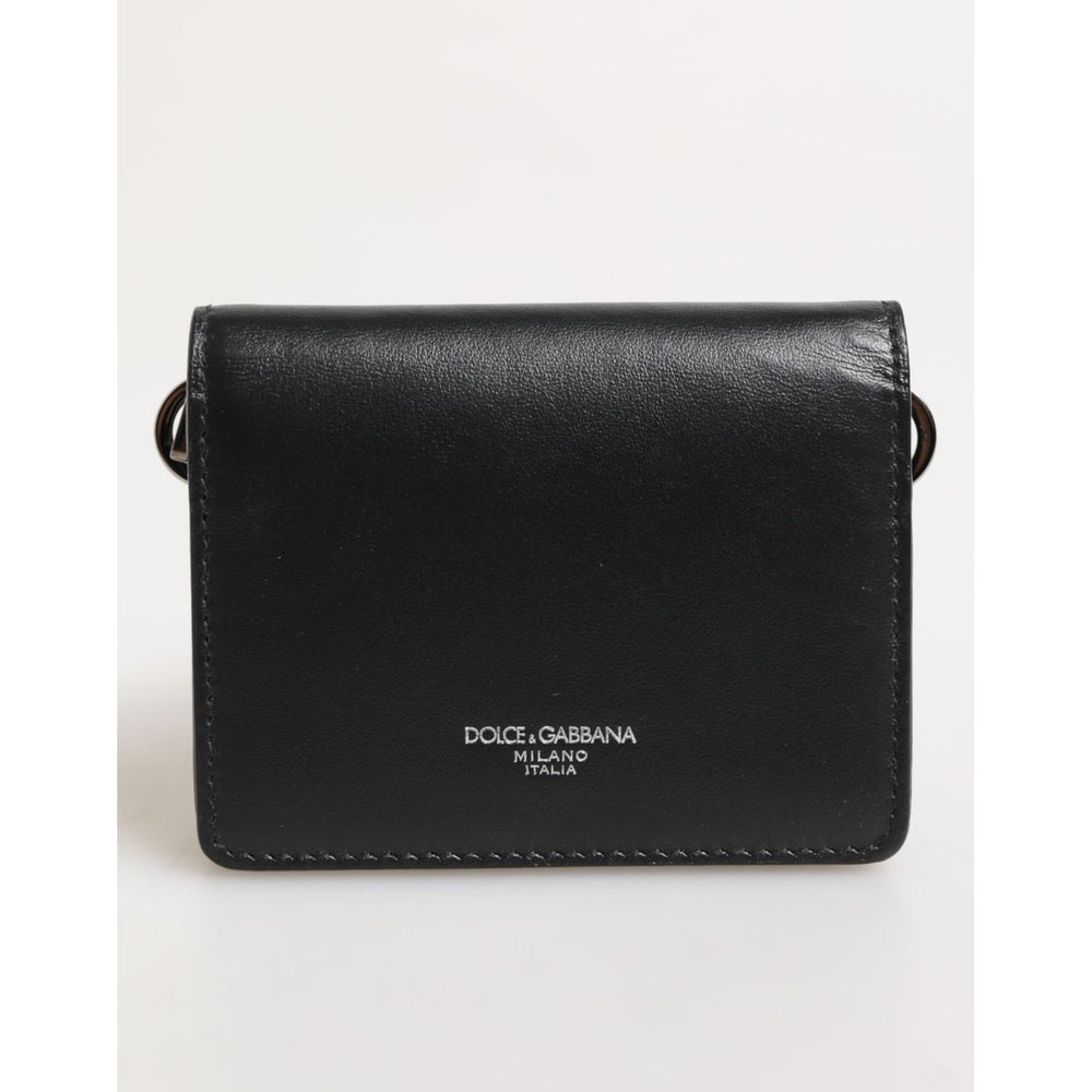 Dolce & Gabbana Black Leather DG Logo Bifold Card Holder Men Borse Wallet
