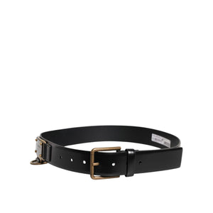 Dolce & Gabbana Black Leather DG Logo Plaque Buckle Belt