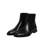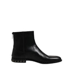 Dolce & Gabbana Black Leather Logo Ankle Boots Studded Shoes