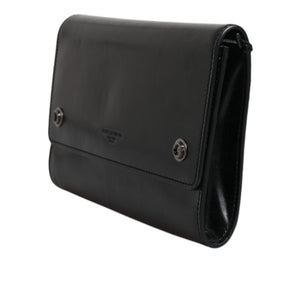 Dolce & Gabbana Black Leather Logo Embossed Crossbody Bag