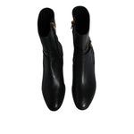 Dolce & Gabbana Black Leather Logo Mid Calf Boots Shoes