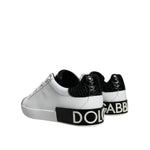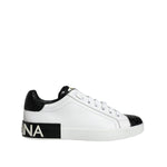 Dolce & Gabbana Black Leather Logo Portofino Sneaker Shoes