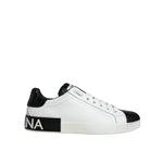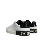 Dolce & Gabbana Black Leather Logo Portofino Sneaker Shoes