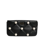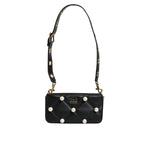 Dolce & Gabbana Black Leather Pearl Embellished Logo Shoulder Bag