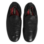 Dolce & Gabbana Black Leather Slip On Men Flat Loafers Shoes