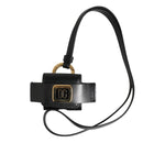 Dolce & Gabbana Black Leather Strap Gold Metal DG Logo Plaque Airpods Case