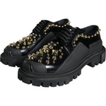 Gorgeous, brand new with tags 100% Authentic Dolce & Gabbana black Trekking derby. The model is made of soft polished leather, and the lapel-style inserts on the side panels are made of dense rubber. The masculine character of the pair on a chunky tread sole is balanced by the decorations, a pattern of shiny gold studs on the cape.