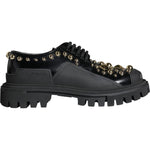 Dolce & Gabbana Black Leather Trekking Derby Embellished Shoes