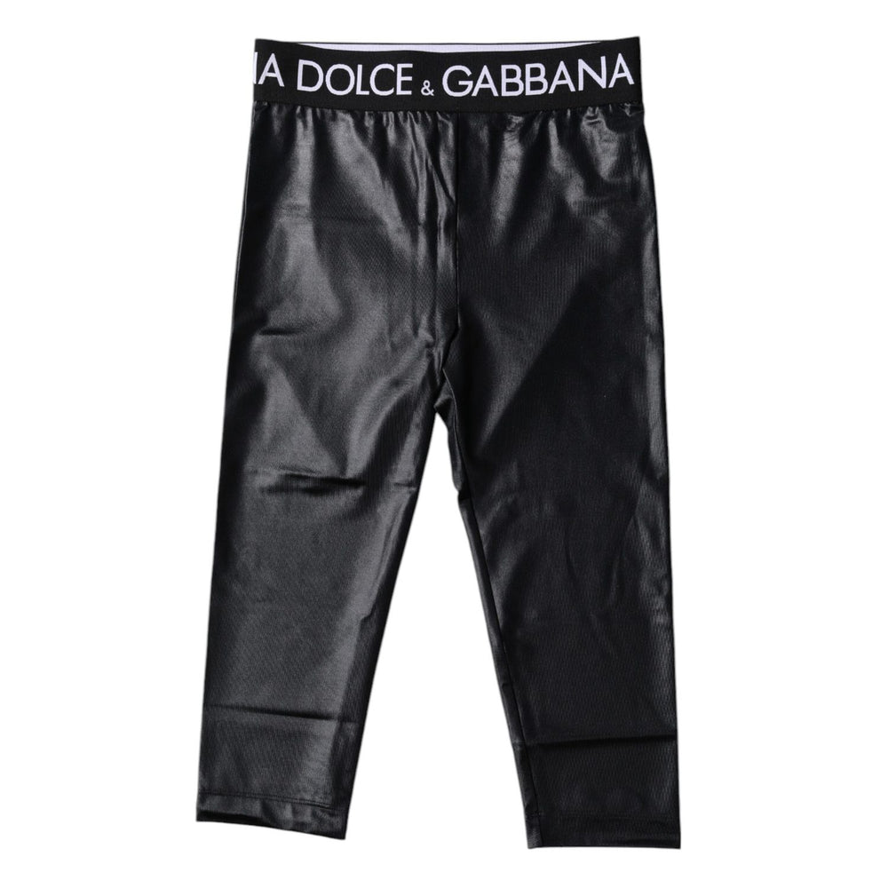 Dolce & Gabbana Black Logo Nylon Cropped Tights Pants Underwear