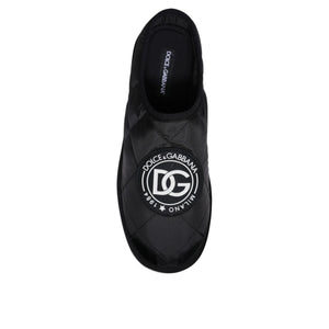 Dolce & Gabbana Black Nylon Quilted Logo Patch Sandals Slides Shoes