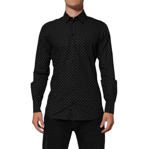 Dolce & Gabbana Black Polka Dot Cotton GOLD Men Formal Dress Shirt