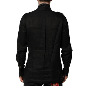 Dolce & Gabbana Black Polka Dot Linen Silk Men Casual Shirt
