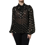 Dolce & Gabbana Black Sheer Tied Neck Polka Dots Blouse Top