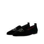 Dolce & Gabbana Black Velvet Crystal Crown Loafers Formal Dress Shoes