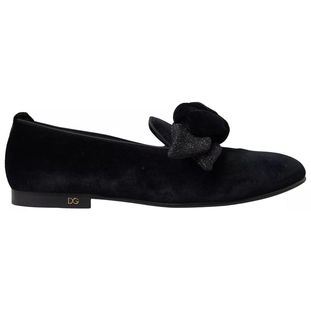 Dolce & Gabbana Black Velvet Flats Bow Young Queen Shoes