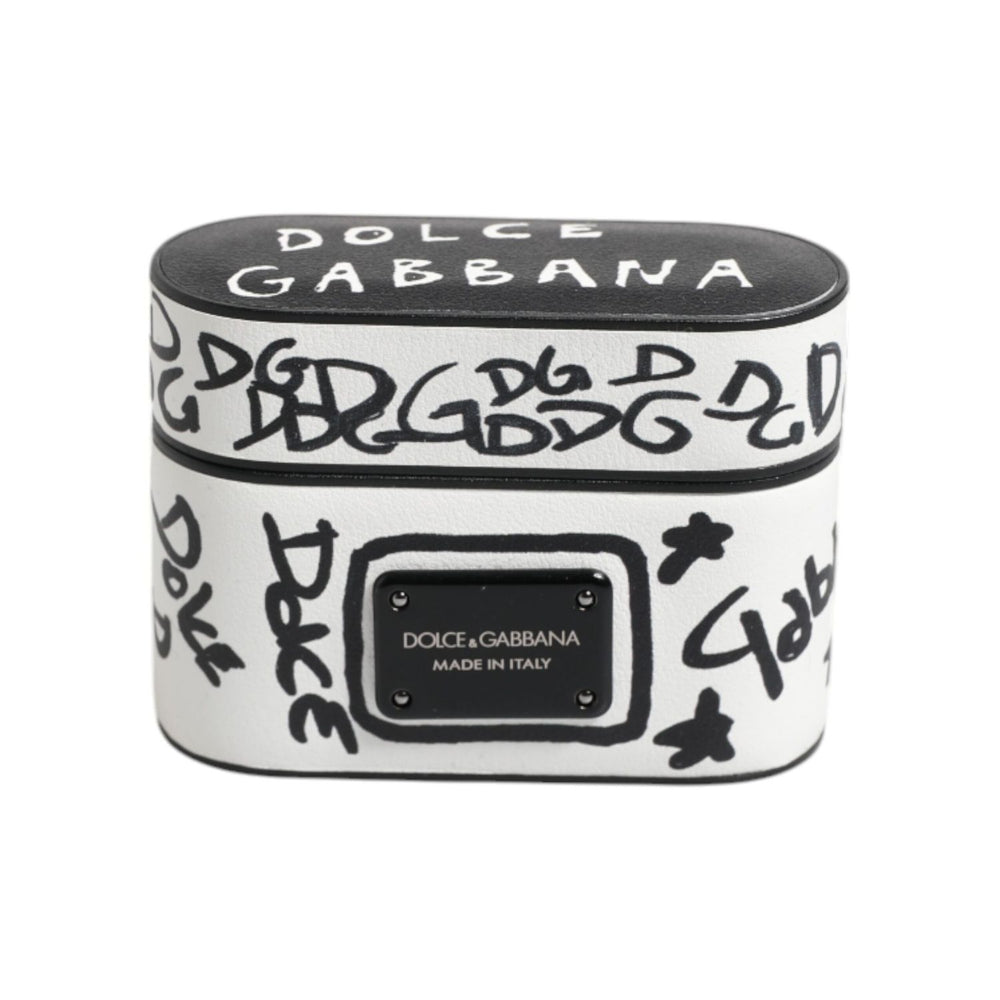 Dolce & Gabbana Black White Leather Scribble Embossed Logo Airpods Case