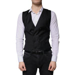 Dolce & Gabbana Black Wool Formal Dress Men Waistcoat Vest