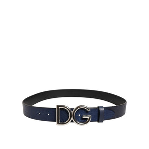 Dolce & Gabbana Blue Classic Silver Metal DG Logo Buckle Belt