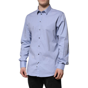 Dolce & Gabbana Blue Cotton GOLD Long Sleeves Dress Shirt