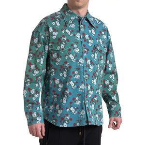 Dolce & Gabbana Blue Floral Cotton Button Down Denim Shirt