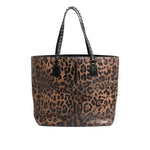Dolce & Gabbana Brown Leopard GLAM Leather Logo Plaque Tote Bag