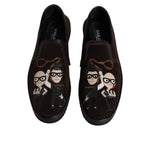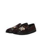 Dolce & Gabbana Brown Suede DG Family Slip On Flats Shoes