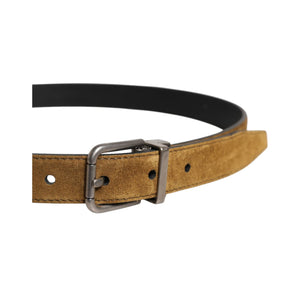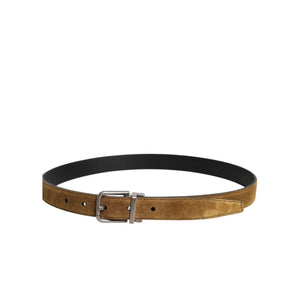 Dolce & Gabbana Brown Velvet Leather Logo Buckle Belt