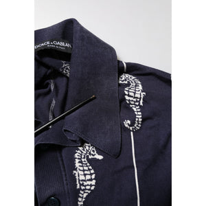Dolce & Gabbana Dark Blue Sea Horse Collared Polo T-shirt