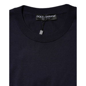 Dolce & Gabbana Dark Blue Silk Crew Neck Short Sleeves T-shirt