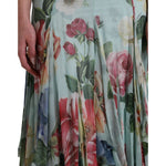 Dolce & Gabbana Blue Floral Print Tiered Long Maxi Dress