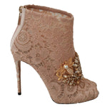 Dolce & Gabbana Pink Crystal Lace Booties Stilettos Shoes