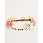 Dolce & Gabbana Gold Floral Tiara Pink Roses Crystal Crown Headband