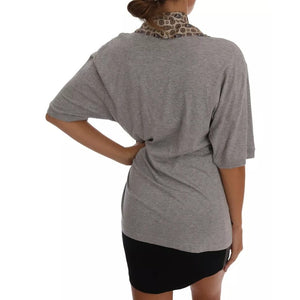 Dolce & Gabbana Gray Cotton Owl Silk Scarf Top T-shirt