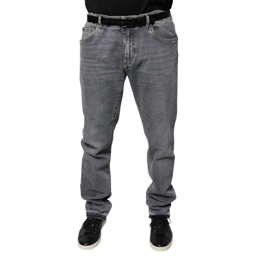 Dolce & Gabbana Gray Logo Cotton Stretch Skinny Denim Jeans