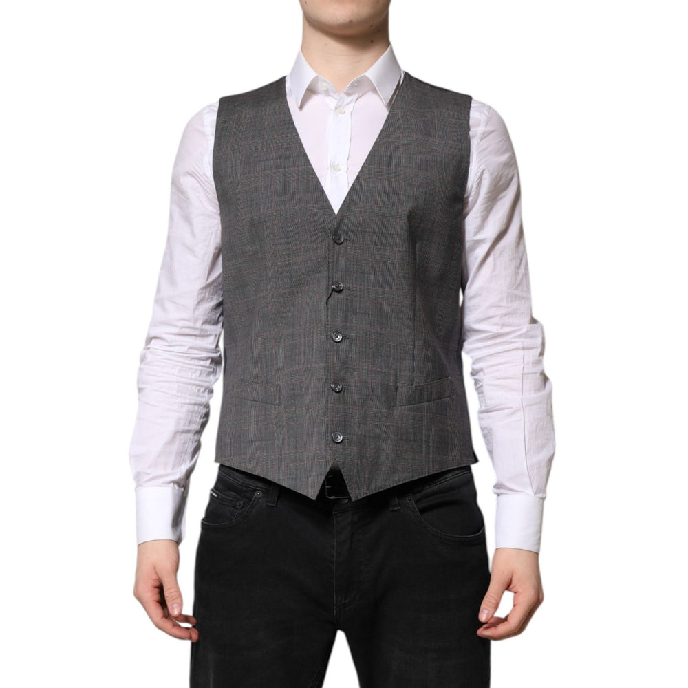 Dolce & Gabbana Gray Plaid Wool Formal Dress Waistcoat Vest