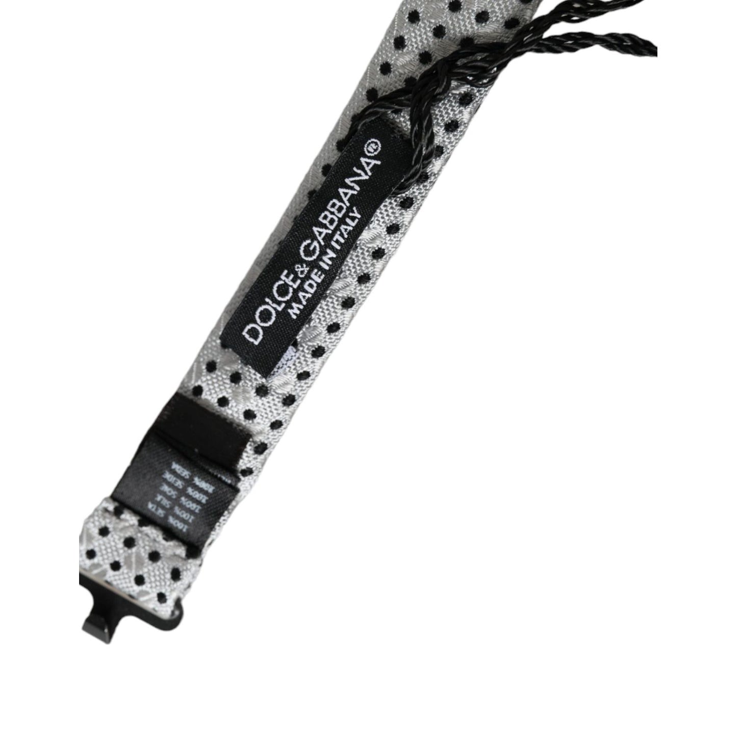Dolce & Gabbana Gray Silk Polka Dot Adjustable Neck Men Papillon Bow Tie