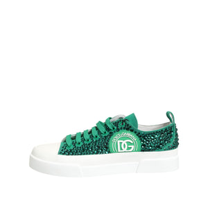 Dolce & Gabbana Green Portofino Crystal DG Logo Sneakers Shoes