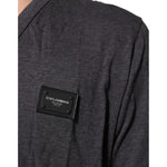 Dolce & Gabbana Grey Cotton V-Neck Logo Plaque Melange T-Shirt