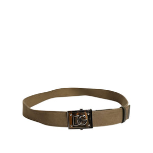 Dolce & Gabbana Military Green Nylon Logo Metal Buckle Belt
