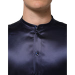 Dolce & Gabbana Navy Silk Long Sleeve Mandarin Collar Shirt