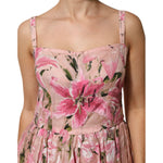Dolce & Gabbana Pink Cotton Floral Pleated Sleeveless Dress