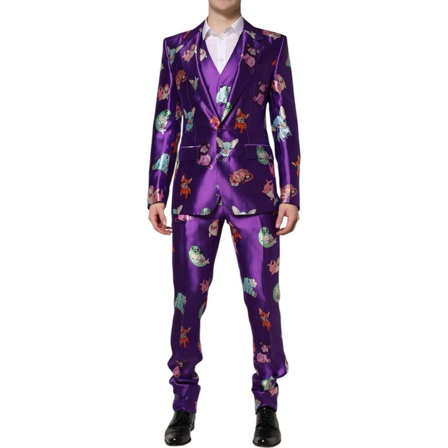 Dolce & Gabbana Purple Silk Animal Print 3 Piece Suit