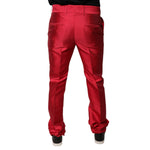 Dolce & Gabbana Red Silk Slim Fit Mid Waist Dress Formal Pants