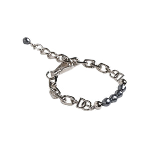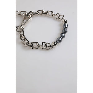 Dolce & Gabbana Silver Tone Chain Lobster Clasp Logo Gray Pearls Bracelet