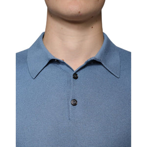 Dolce & Gabbana Sky Blue Silk Collared Men Pullover Sweater