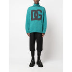 intarsia-knit logo jumper from DOLCE & GABBANA featuring ribbed cuffs and hem, mélange effect, intarsia-knit logo, roll neck, sea green, black, wool blend, long sleeves and straight hem. Wool blend high neck sweater Size and Fit - This piece fits true to size. We recommend you get your regular size. Model is 1,84m / 6ft 1in wearing size M