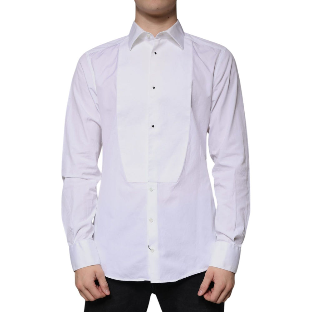 Dolce & Gabbana White Bib Cotton Poplin GOLD Men Formal Shirt