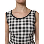 Dolce & Gabbana White Black Checkered Sleeveless Sheath Dress