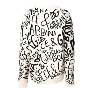 Dolce & Gabbana White Black Logo Print Women Pullover Sweater